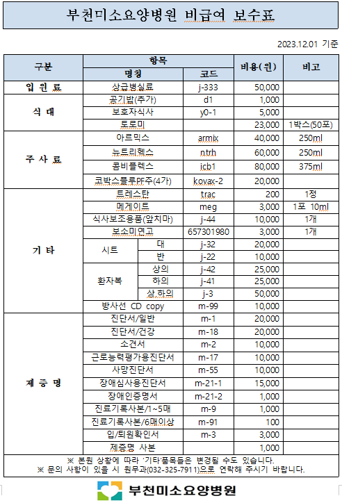 2023년 12월 기준 비급여 보수표입니다. 페이지 정보 작성자 관리자 댓글 0건 조회 1,589회 작성일 23-05-26 17:09 본문 목록 이전글3주기인증 등급획득 24.01.25 댓글목록 댓글목록 등록된 댓글이 없습니다.