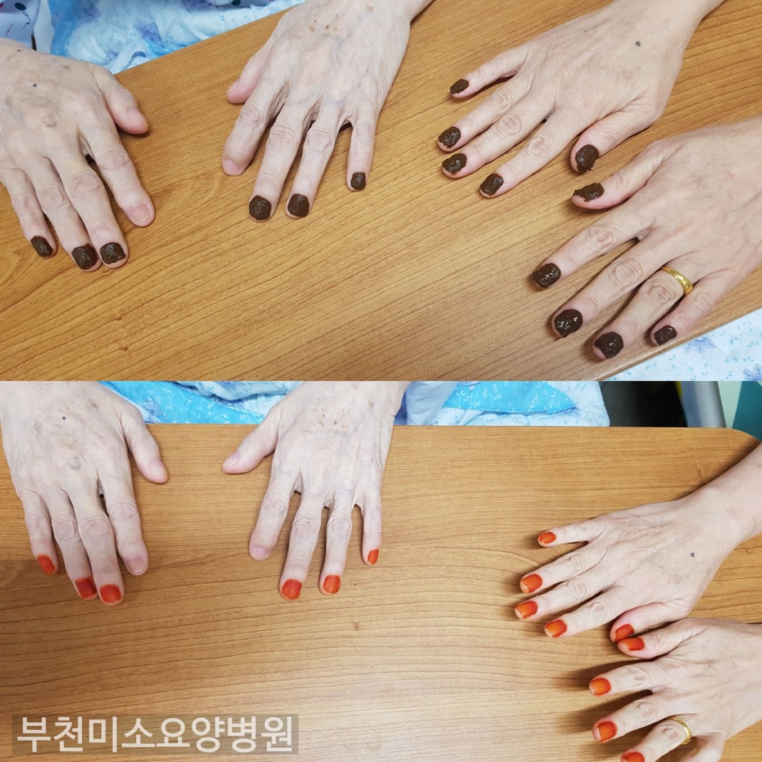 [18-08-30]손톱에 봉숭아물 리터칭을 했어요! 페이지 정보 작성자 관리자 댓글 0건 조회 1,903회 작성일 18-09-10 15:41 본문 지난번에 물들였던 색상보다 더 짙은 색을 내기위해 리터칭을 했어요! 정말 색이 예쁘게 잘 나와서 모두들 정말 좋아하셨답니다^^ 목록 이전글[18-09-06]얼굴모양 활동지에 화장을 해주었어요! 18.09.10 다음글[18-08-22]기독예배를 드렸어요! 18.09.10 댓글목록 댓글목록 등록된 댓글이 없습니다.