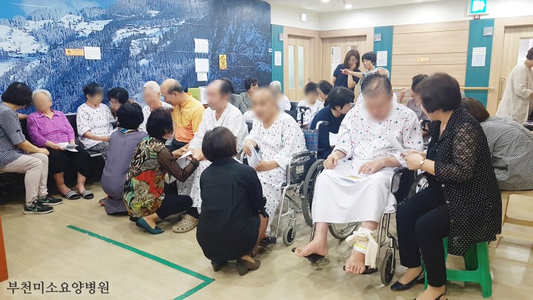[18-09-12] 기독예배를 드렸어요! 페이지 정보 작성자 관리자 댓글 0건 조회 1,757회 작성일 18-09-14 09:12 본문 정기 기독예배를 드렸어요! 예배의 마지막 순서인 1대1 축도에서 축도를 받고계신 환자분들의 모습입니다^^ 목록 이전글[18-09-18] 추석맞이 미용을 받았어요! 18.09.28 다음글[18-09-06]얼굴모양 활동지에 화장을 해주었어요! 18.09.10 댓글목록 댓글목록 등록된 댓글이 없습니다.