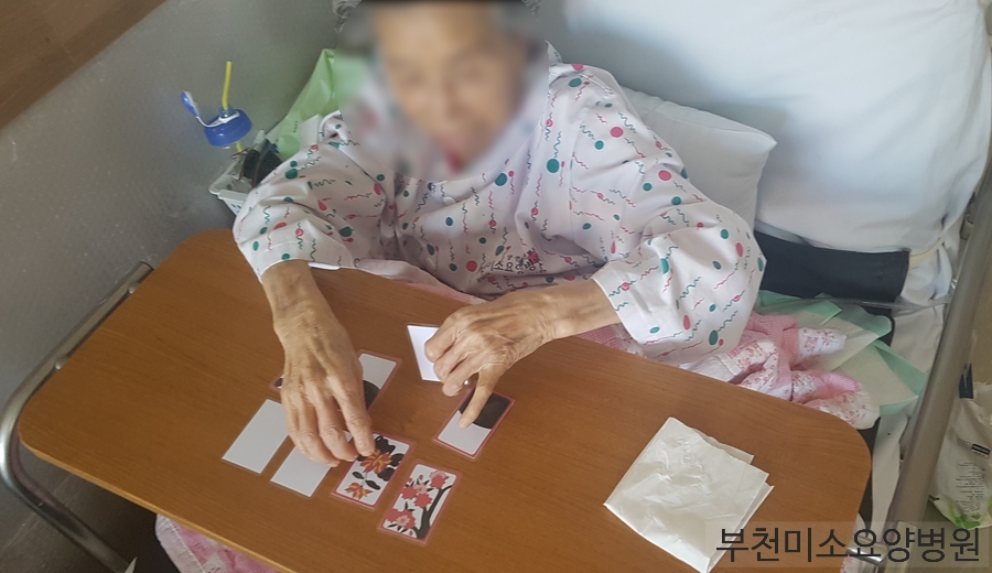 [18-09-27] 화투패그림을 맞췄어요! 페이지 정보 작성자 관리자 댓글 0건 조회 1,862회 작성일 18-09-28 11:13 본문 화투패 그림을 맞춰서 뒤집는 놀이를 했어요. 화투패그림맞추기는 순간기억력과 집중력을 요구하는 두뇌운동이에요. 치매예방에 좋은 놀이랍니다^^ 목록 이전글[18-10-04]공 던지고 받기 18.10.04 다음글[18-09-18] 추석맞이 미용을 받았어요! 18.09.28 댓글목록 댓글목록 등록된 댓글이 없습니다.
