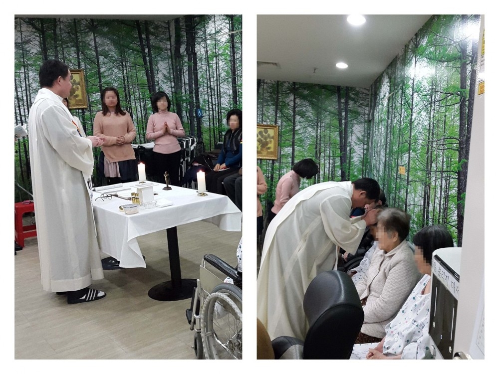 천주교 미사 페이지 정보 작성자 관리자 댓글 0건 조회 2,917회 작성일 16-01-07 11:05 본문 2016년에 들어서 처음으로 미사를 드렸습니다. 신부님께서 미리 오셔서 인사를 하고 새로 오신 환자들과도 면담을 하고 미사를 시작했습니다. 새로 오신 환자들 중에 약을 드신 분이 계셨는데 미사 끝나고 신부님께 혼자 찾아가서 고해성사를 했습니다. 환자분은 죄를 지었는데 신부님께 고백하니 맘이 편하다며 웃으셨습니다. 미사가 천주교를 믿는 환우분의 맘에 많은 위로가 되어서 참 다행이고 올 한해 동안도 어르신들이 행복했으면 합니다. 목록 이전글새해 복주머니 만들기 16.01.15 다음글사랑의 이미용 봉사!! 16.01.05 댓글목록 댓글목록 등록된 댓글이 없습니다.