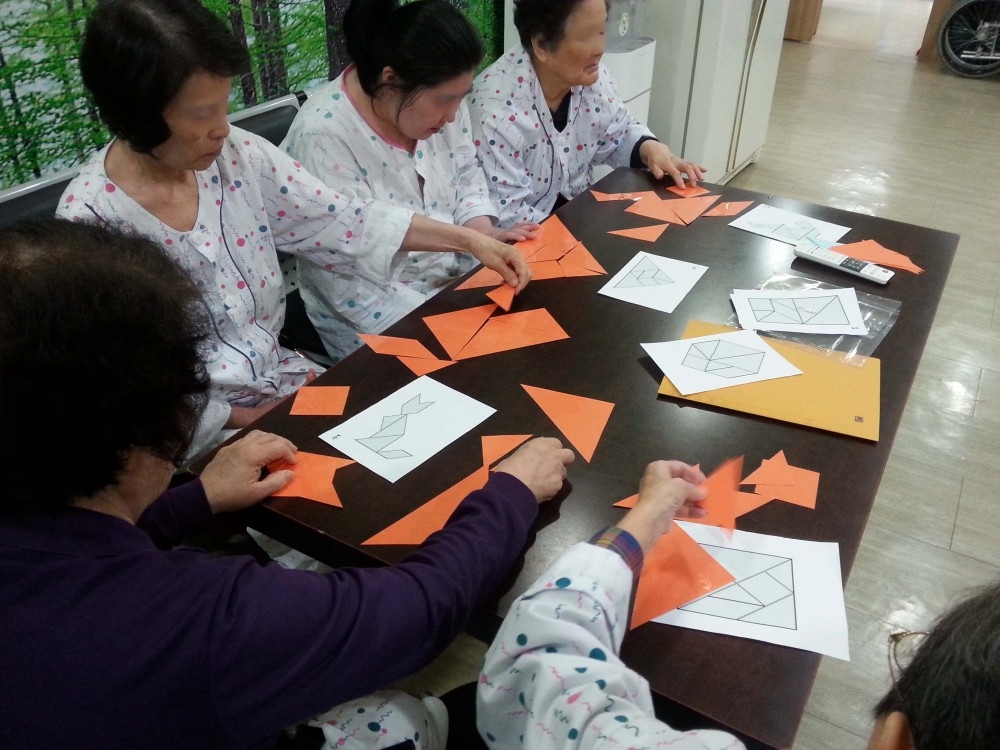 했습니다.  단계별로 시작한 칠교놀이는 어르신들마다 어려워하는 단계가 다 달랐어요